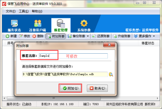 信管飛送貨單軟件、信管飛倉庫管理軟件、信管飛RMS軟件等軟件數(shù)據(jù)都是保存在賬套中,有時可能會遇到登錄時提示賬套列表不存在且在應(yīng)用中心程序的賬套管理中沒有賬套信息的情況。這時我們可以通過附加賬套的方式把賬套文件進行附加進來。 以信管飛送貨單軟件為例。示范下如何附加賬套?打開紅色的應(yīng)用中心程序,選擇賬套管