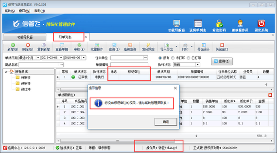 信管飛RMS、信管飛送貨單軟件、信管飛倉庫管理軟件內(nèi)都支持設(shè)置操作員不可調(diào)整打印格式模版,本篇文章我們以信管飛RMS專業(yè)版為例詳細介紹一下進銷存軟件內(nèi)如何設(shè)置操作員不可調(diào)整打印格式模版? 在功能導(dǎo)航窗點“系統(tǒng)管理”→“操作員及授權(quán)”即可進入“操作員管理及授權(quán)”界面,選中操作員賬號,在“其他操作權(quán)限”界面將“打印格式設(shè)計”權(quán)限