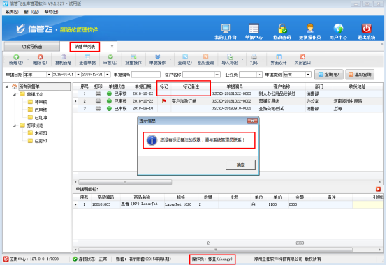 • 倉庫管理軟件如何設置操作員不可標記單據備注?