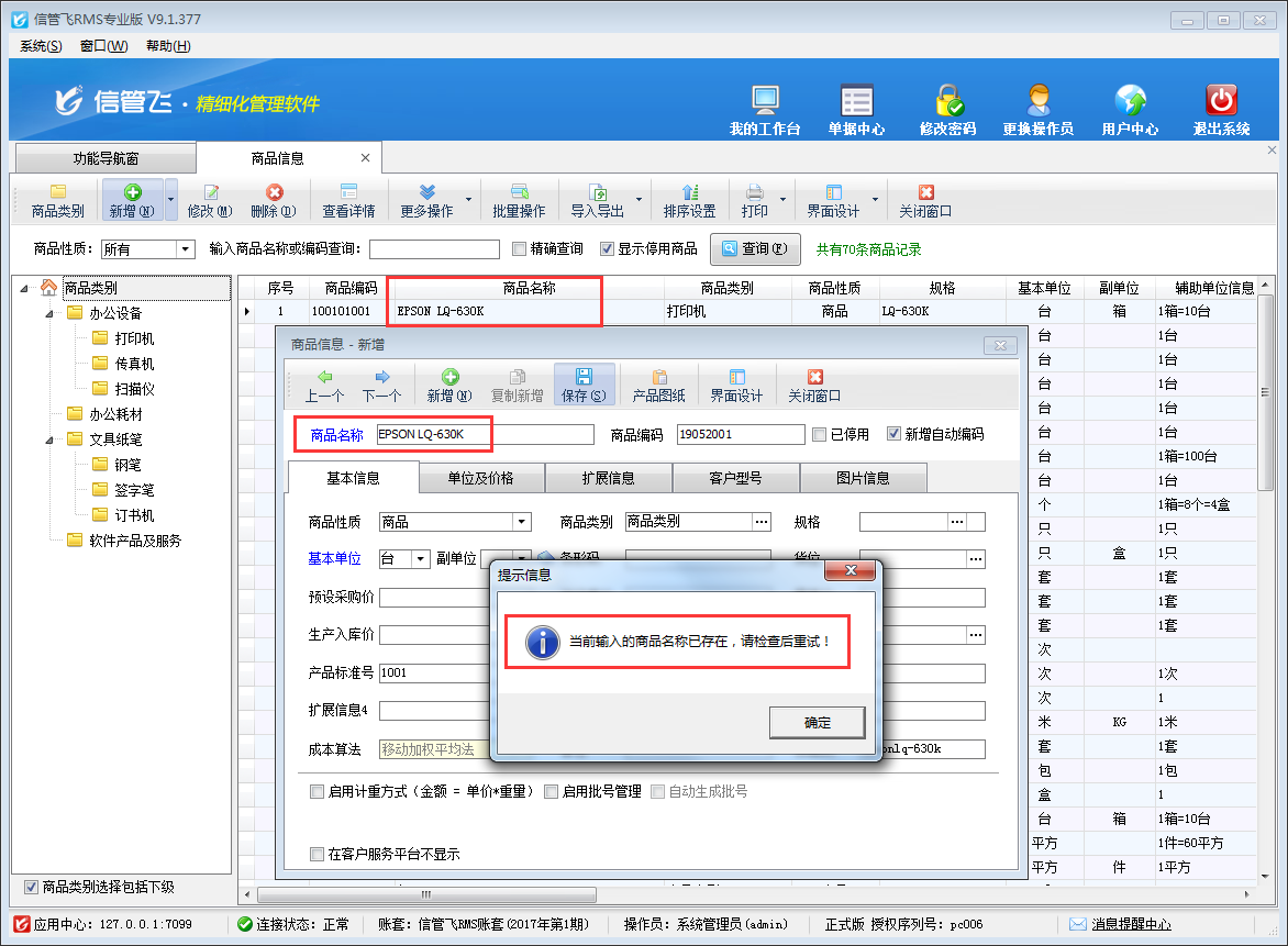 • 進銷存軟件內如何設置商品名稱不可重復?