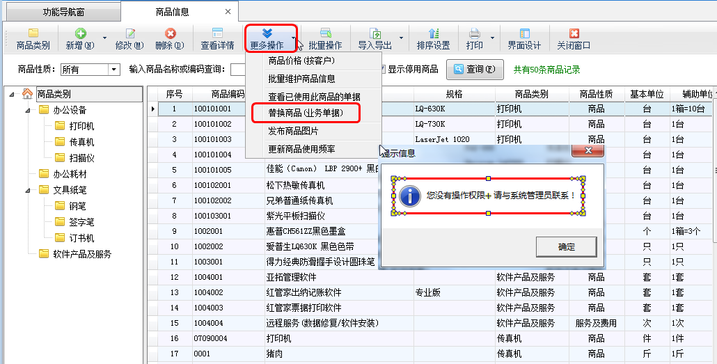 • 送貨單軟件如何設置操作員不可操作“替換商品(業務單…