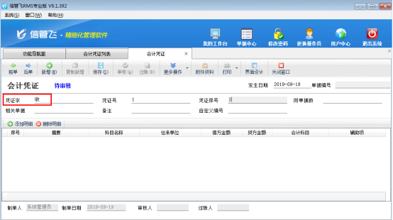 信管飛RMS(進銷存ERP軟件)是基于自主研發的亞拓基礎應用平臺開發的企業ERP軟件(精細化管理軟件、進銷存管理軟件、記賬軟件),包括采購管理、銷售管理、庫存管理、往來賬管理、財務管理、出納管理等業務管理功能。財務處理模塊可以登記會計憑證,軟件支持對會計憑證設置默認憑證字。下面以信管飛RMS專業版為例介紹一下如何對會計憑證設置默認憑證字。
