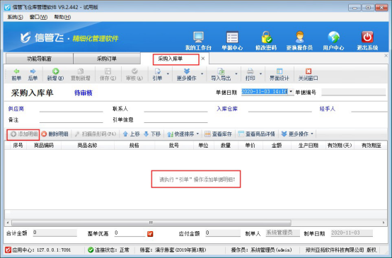 信管飛倉庫管理軟件、信管飛RMS軟件等支持管理倉庫庫存,倉庫庫存的增減根據(jù)對應的采購入庫單和銷售出庫單審核后自動計算,有部分用戶下采購單時先提交一個訂單,然后采購員根據(jù)訂單進行實際采購,采購完成后進行入庫操作,為避免手動輸入出錯,軟件支持設置采購入庫單只能通過引用訂單生成。本文以“信管飛倉庫管理軟件”為例,示范下如何進行設置?