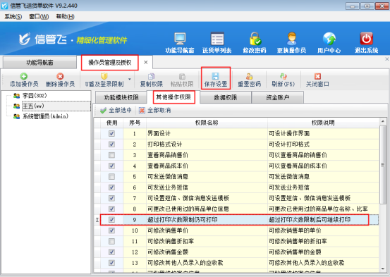 信管飛送貨單軟件、信管飛RMS、信管飛倉庫管理軟件都支持設置報表的打印次數(shù),以此來限制單據(jù)的打印次數(shù)。通過設置這個參數(shù),可以避免開單人員開單打印后又修改單據(jù),出現(xiàn)軟件中的單據(jù)內(nèi)容與打印出來的單據(jù)不一樣的情況。下面我們以信管飛送貨單軟件為例演示一下具體的操作步驟。 設置報表打印次數(shù)提示: 登