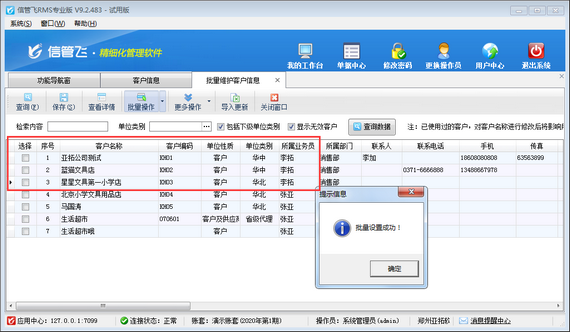 信管飛RMS、信管飛倉庫管理軟件、信管飛送貨單軟件等都支持批量維護客戶信息,可批量維護客戶信息的名稱、聯系人、電話、地址等信息。同時也支持批量維護客戶所屬業務員,本篇文章以進銷存管理軟件為例介紹一下如何批量維護客戶所屬業務員? 在功能導航窗點擊“基礎資料”—》“客戶信息”,在客戶信息界面工具欄點擊“更多操作”下的“批量維護客