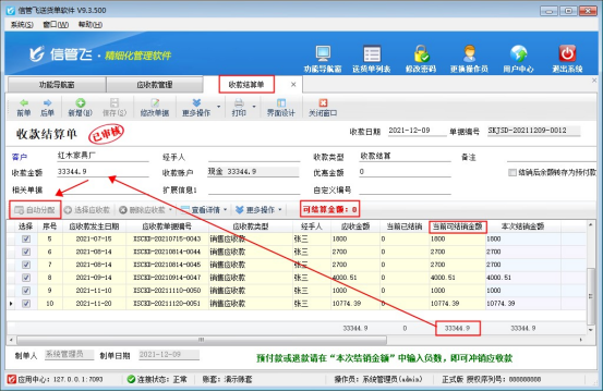 信管飛系列下的送貨單軟件、RMS進銷存軟件等都支持開銷售單和管理銷售單生成的對應應收款,如存在客戶付款小于此客戶的應收賬款時,軟件中該如何對此應收款進行結銷?本文以“信管飛RMS軟件”為例,示范下如何結算。     示例客戶:藍貓文具店,應收金額9001,客戶付款5000,在功能導航窗點擊“往來管理”—》“應
