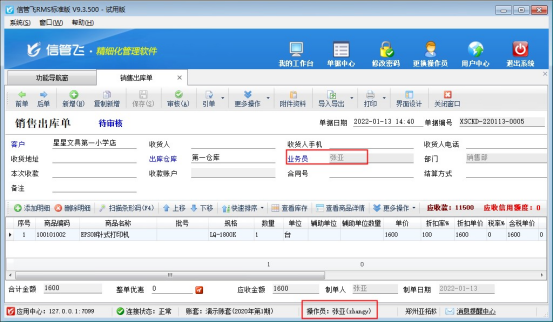 信管飛RMS軟件支持客戶和供應商設置所屬業務員,來管理業務員的業績情況。在開單選擇客戶后自動顯示默認的業務員和經手人,為了避免操作員開單選擇客戶或供應商后修改對應的業務員或經手人信息,軟件支持控制操作員不能修改業務員和經手人權限,本文以“信管飛RMS軟件”為例進行示范。     使用操作員“張亞”登錄軟件,在