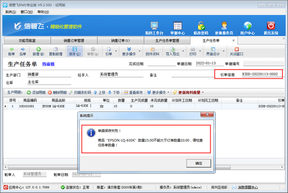 • 進銷存軟件如何設置生產任務單數量不可大于銷售訂單數…