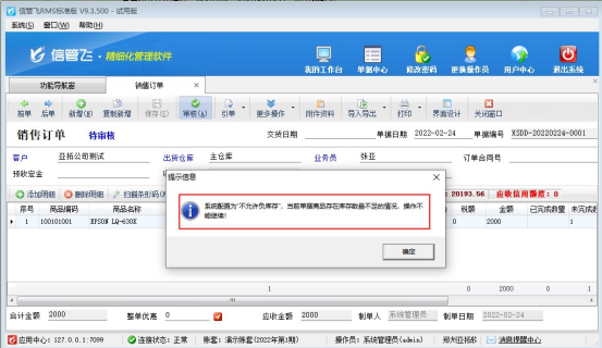 • 信管飛RMS軟件如何設置銷售訂單負庫存不能審核?